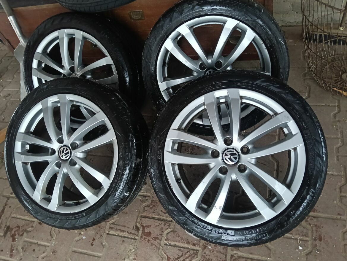Witam Sprzedam komplet kół aluminiowych18 razem z oponami Felgi seat cupra 2 pasują też do VW i Audi Skoda Rozstaw śrub 5x112 et51 7.5jx18 felgi oryginalne